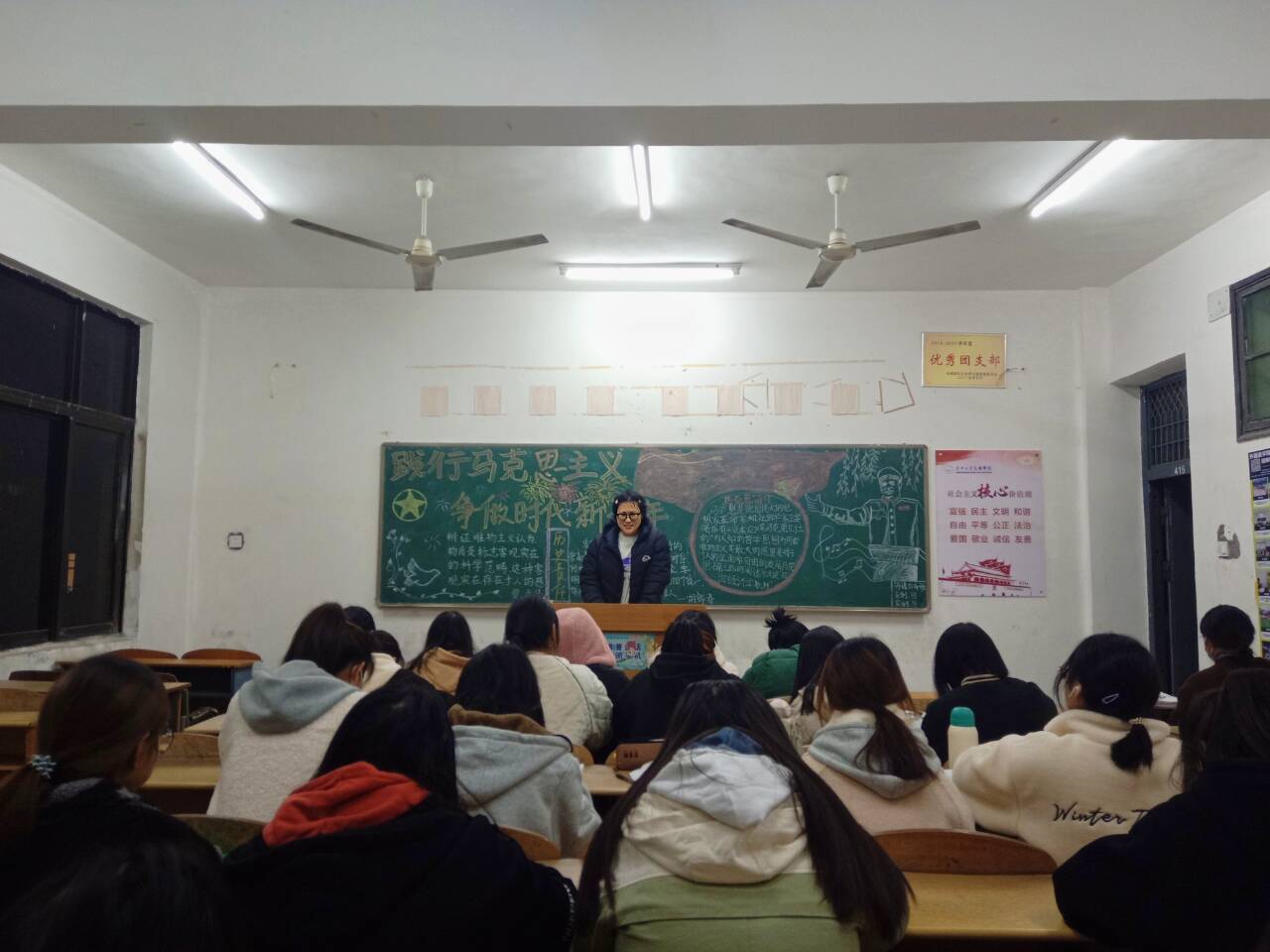 (通讯员 韩小红)为推动当代青年学生深刻理解党的指导思想,增强政治素养,12月8日至9日,外国语学院开展“践行马克思主义,争做时代新青年”主题团课,本次团课由各班班委主持。