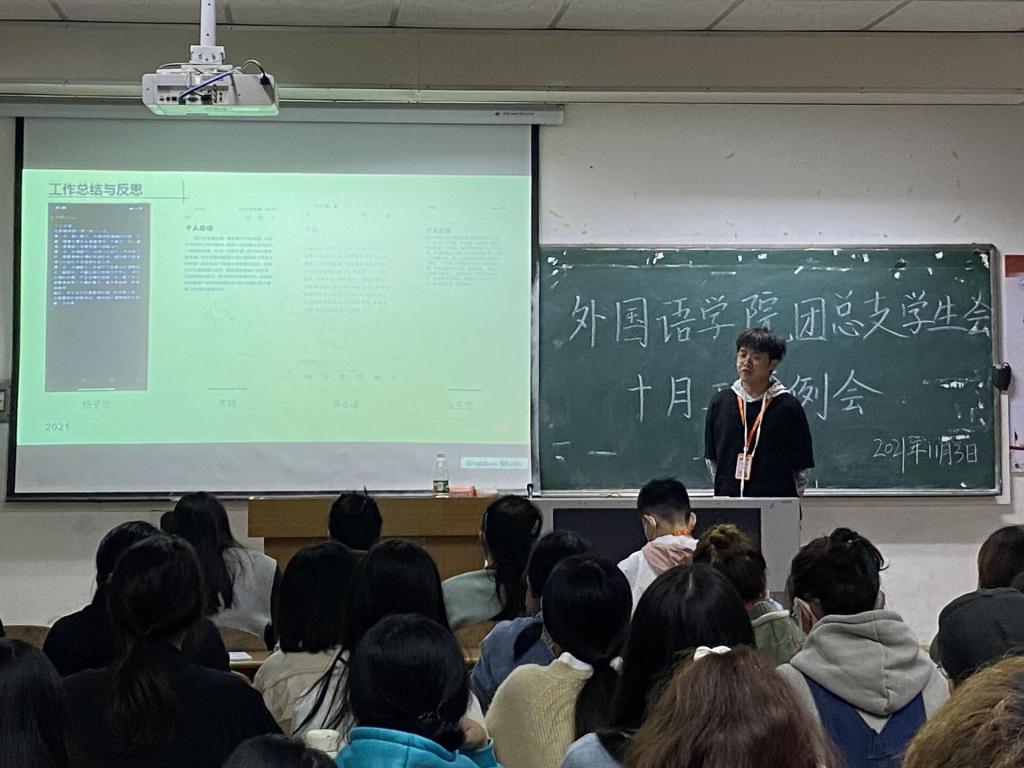 (通讯员 高业萌)11月3日晚7点,外国语学院团总支学生会于一教308召开十月工作例会,学生会全体成员参加。