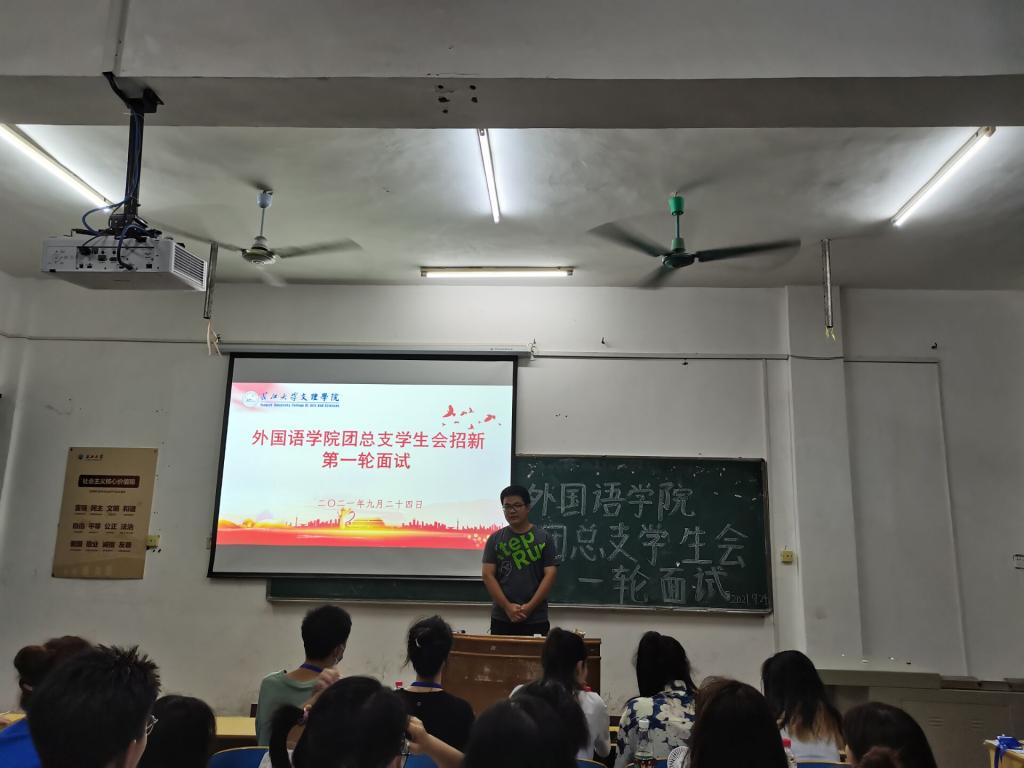 (通讯员 田雨)为学生会不断注入新鲜血液,吸纳更多优秀人才,更好地开展学生会工作,9月23日至24日,外国语学院团总支学生会分别于一教301和214教室开展第一轮招新面试。本次面试由组织部部长于普主持,学生会全体成员和面试新生参加。