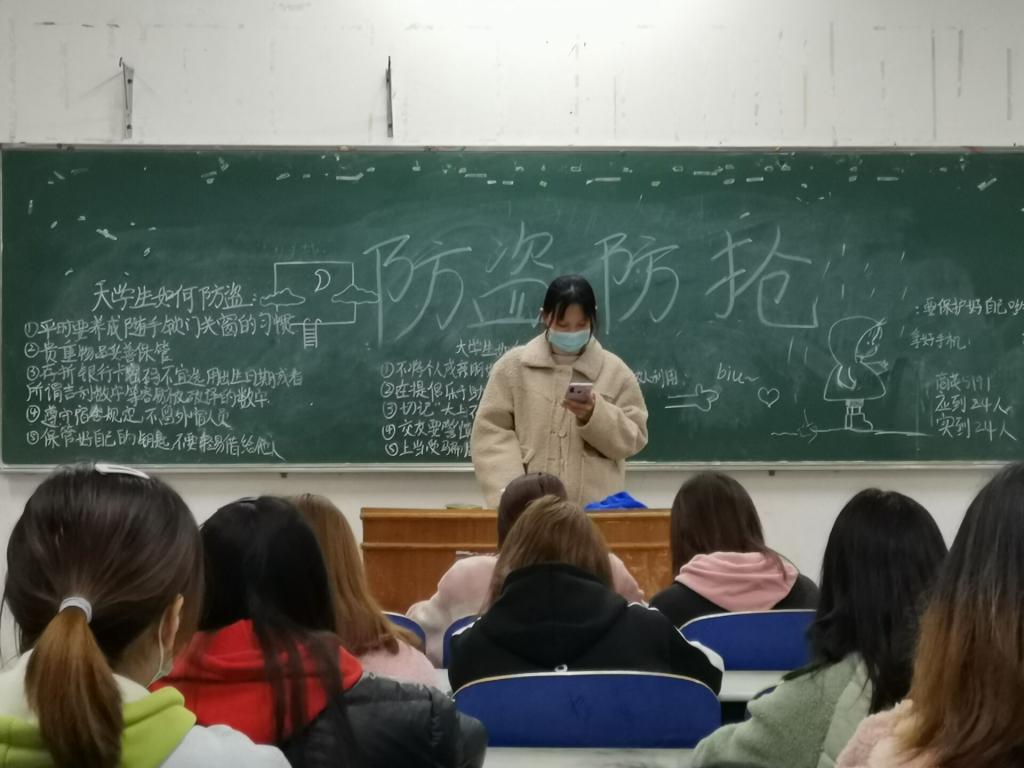 (通讯员 田雨)3月15至18日,为加强大学生安全意识,了解防盗于未然的重要性,外国语学院各班开展“防盗防抢”的主题班会。