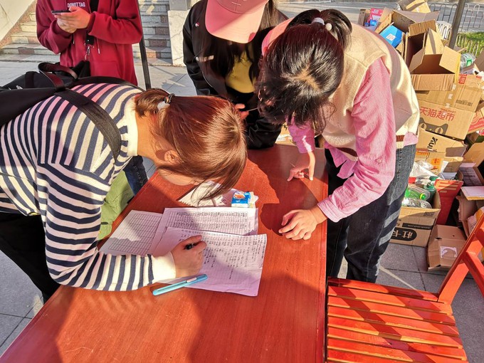 本次活动以“物尽其用,环保生活”为主题,且所有捐赠物品变现后将以书籍形式捐赠给新疆贫困地区儿童。活动以寝室为单位进行登记,采取积分制,以兑换奖品及荣誉证书。上午8点正式开始,同学们陆陆续续地拿着收集已久的废品来到活动点。短暂的几个小时里志愿者们回收了许多的废品,同学们表示很乐意参与到活动中来。
