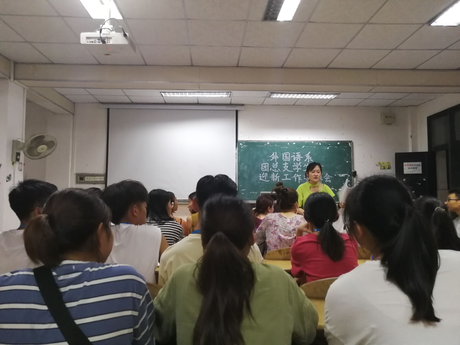 (通讯员 辛叶 董绪萱)一年一度的新生报到即将到来,为了更好的开展迎新工作,9月4号晚上七点,外国语系党总支副书记王玲玲和新生辅导员拓颖老师,雷昕老师,学生会主席团以及各部门部长在一教308教室进行迎新工作安排。