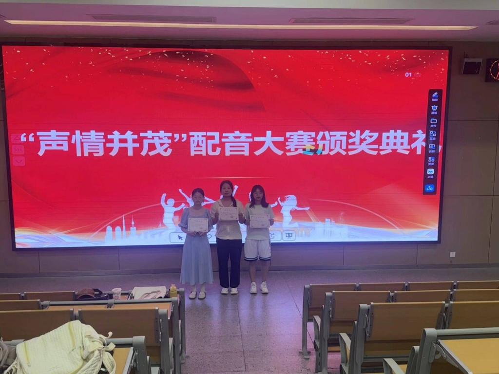 颁奖典礼伊始,主持人对本次配音活动进行总结,宣布获奖名单并对同学们的积极参加表示感谢,随后十组获奖选手按奖项依次上台领取证书并进行合影留恋。