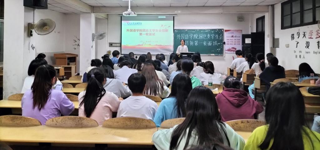(通讯员 杨吉)为促进学生会的发展,充分发挥学生会服务学校、服务同学作用。9月28日晚七点,外国语学院团总支学生会于一教308举行第一轮招新面试。本次面试由副书记于普主持,学生会全体成员和50余名新生参加。