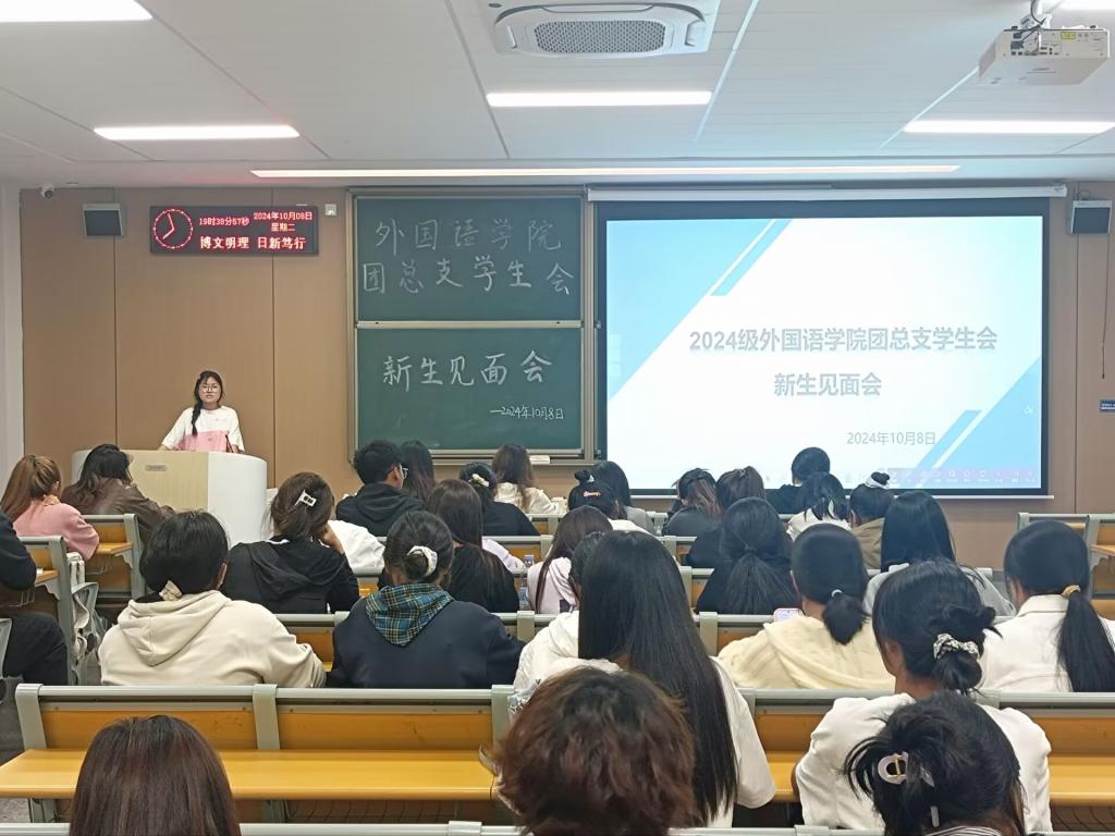 本网讯(通讯员 王金妃)10月8日晚七点,外国语学院团总支学生会于01-A-308召开2024级新生见面会。