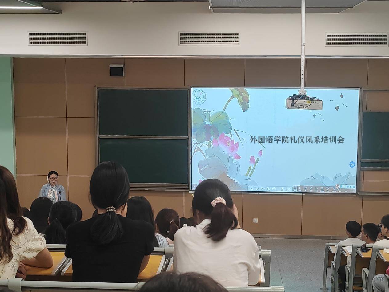 本网讯(通讯员 苏悦)5月8日晚19:00,外国语学院团总支学生会开展礼仪风采培训会,本次培训由辅导员宋静静主讲,全体学生会成员参加。