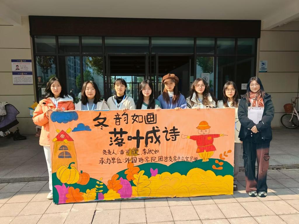 本网讯(通讯员 方嘉琦)“天水清相入,秋冬气始交。”值此秋冬交替之际,为提升文理学院学子的艺术素养,点燃其在寒冷中的热情与活力,外国语学院团总支学生会文宣部于12月5日于B栋教学楼大厅成功举办“冬韵如画,落叶成诗”特色活动。