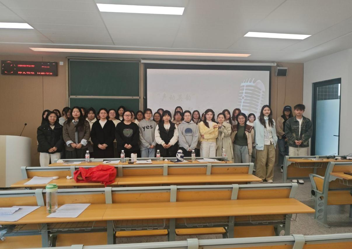 本网讯 (通讯员黎欣怡) 3月20日下午2点, 外国语学院团总支学生会学务部在教学楼A-308举办的以“声动英韵,影绎精彩”配音大赛。学务部干事仝陈婧颖担任主持。
