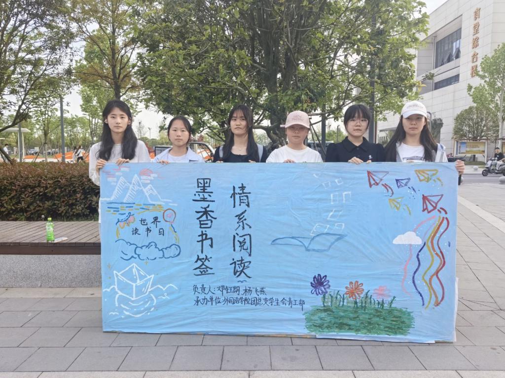 本网讯(通讯员 李胡懿)4月16日外国语学院学生会青工部于B栋宿舍楼前开展“墨香书签,情系阅读”活动。