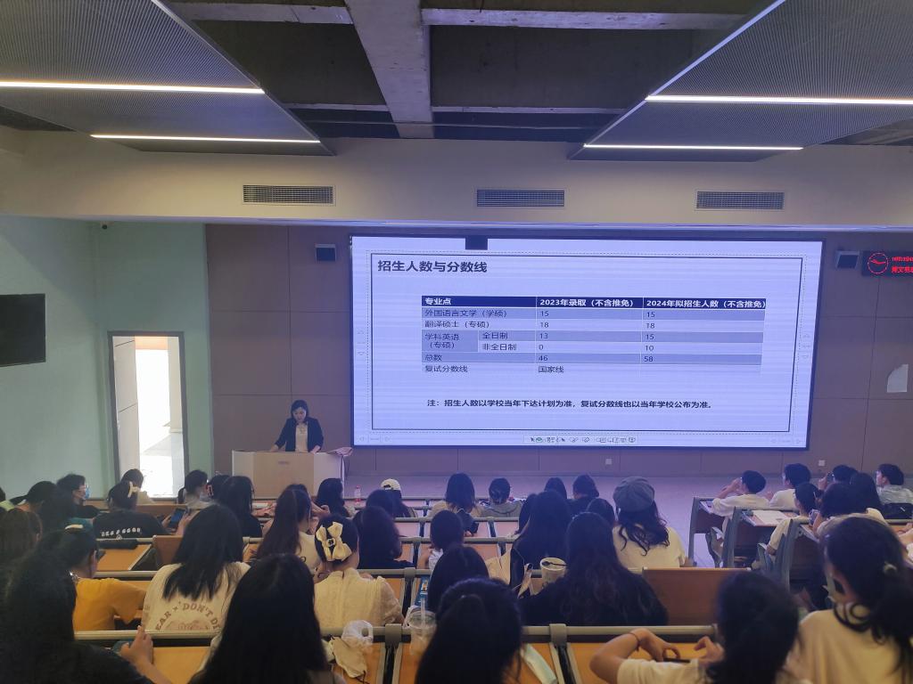 随后,三峡大学外国语学院教师介绍了学院各硕士学位点历年报考和招生情况、师资及科研成果、学院软硬件设施、研究生社会实践活动和国际交流活动。