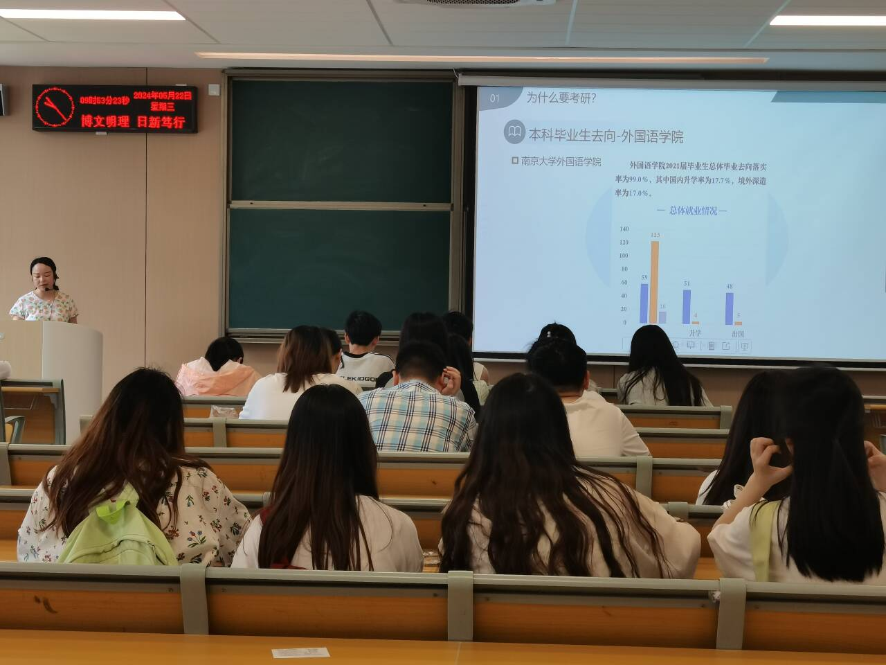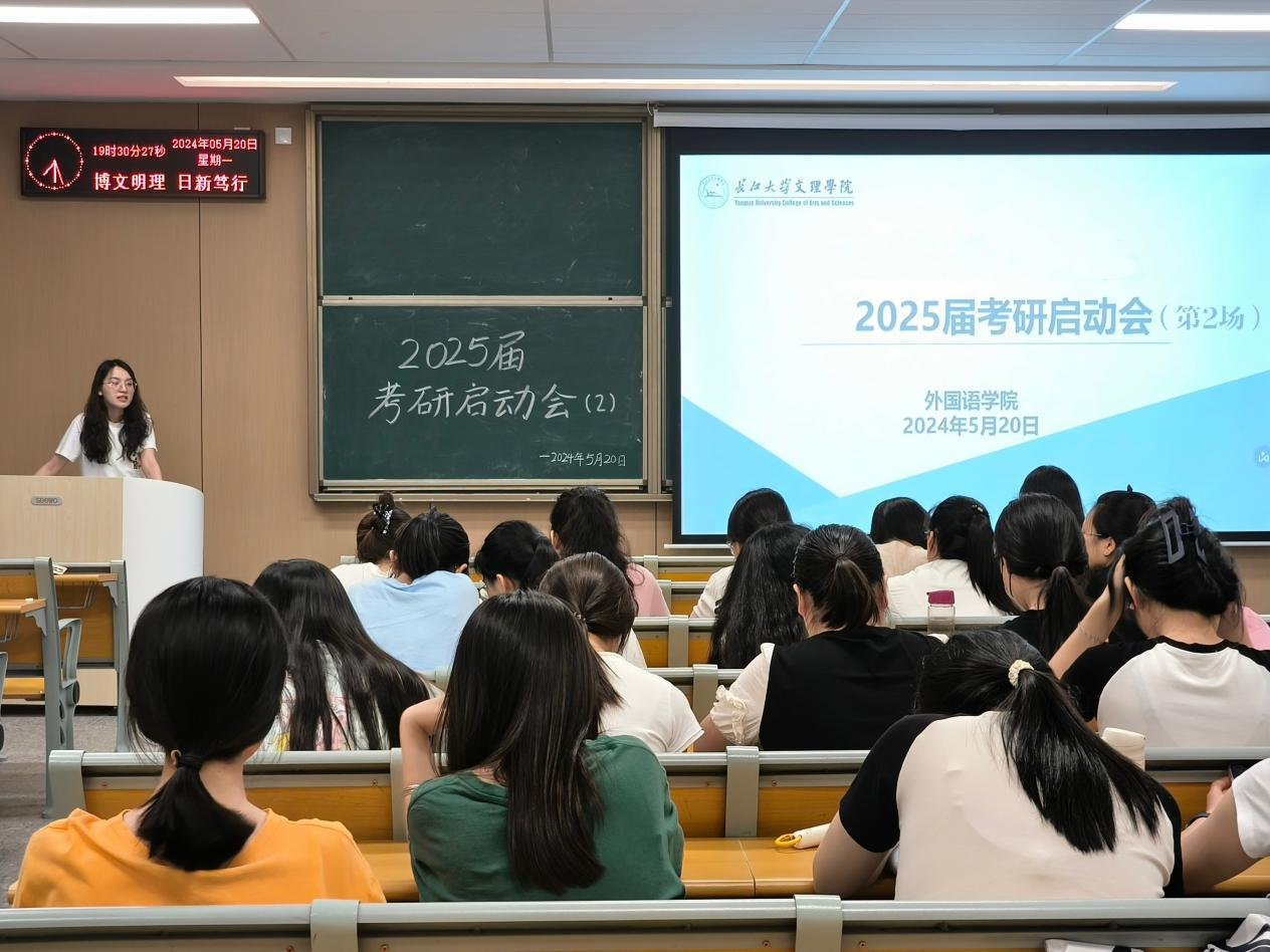 本网讯(通讯员 钟燚)经过前期一个月的考研相关工作的宣传,已有部分学生将考研准备提上日程。随着2025年研究生入学考试的日益临近,外国语学院积极响应学生需求,全面启动了针对2025届学生的考研辅导计划。近日,学院连续举办多场会议和活动,旨在为学生提供全方位的考研支持。