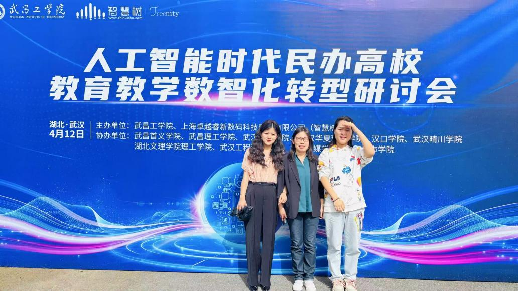 本网讯(通讯员 马欣悦)4月12日上午,为积极响应国家教育数字化战略行动,探索民办高校在人工智能浪潮下的发展新路径,外国语学院副院长、省级一流课程《跨境电子商务》负责人韩翠萍、省级一流课程《英语口语》核心成员盛珊和省级一流课程《英语语音》核心成员马欣悦参加了武昌工学院与智慧树网联合承办的“人工智能时代民办高校教育教学数智化转型” 研讨会,与各界同仁共同探索AI赋能教育新路径。
