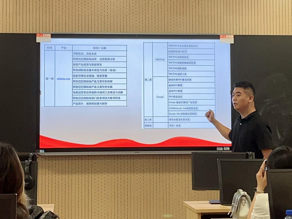 首先,外国语学院院长许晓艳详细介绍了学院在培养学生国际视野、提升跨境电商技能方面的规划,并对本次培训表示了高度的肯定和期望,鼓励师生珍惜学习机会,不断提升专业素养和实践能力。
