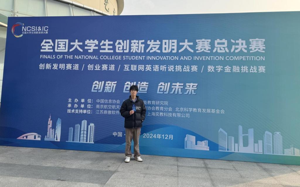 本网讯(通讯员 石从红)2024年12月7日,2024 年全国大学生创新发明大赛互联网英语听说挑战赛全国总决赛在南京航空航天大学举行。我院学生商务5231翁宇涵荣获全国总决赛二等奖。