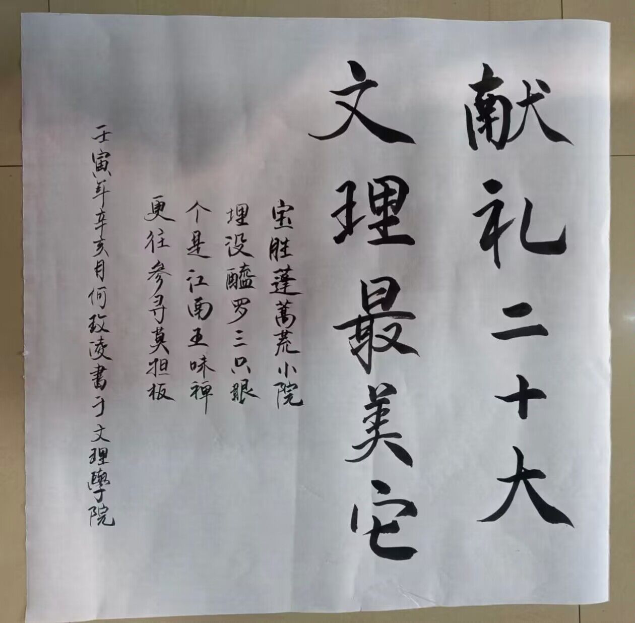 本次活动以“献礼二十大”为主题,收集、展示学生书法作品。活动过程中,同学们展示出极高的热情,积极参与其中,优秀的书法作品与美丽的校园景色融合,把最美祝福献给党,让二十大精神走入学校课堂,走进学生内心。
