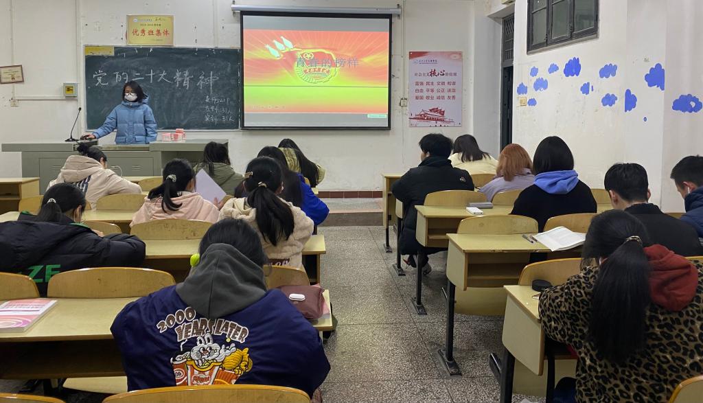 团课中,各班团支书分别从“有理想”、“有担当”、“肯奋斗”三个层面指出当代青年应坚定信念,增强担当意识,成为中华民族伟大复兴征程上的先锋力量。