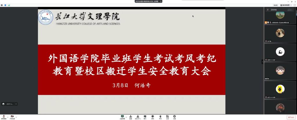 (通讯员 刘钰)3月8日-9日,外国语学院各班召开3月份四六级考试诚信教育及校区搬迁学生安全教育主题班会。