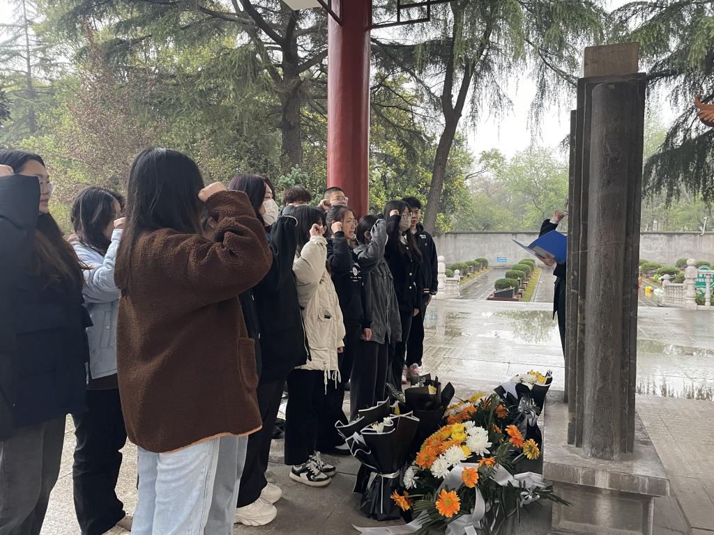 在烈士公墓前,贺黎子同学为代表向革命先烈献花,吴云波同学以缅怀先烈为主题演讲。活动现场庄严肃穆,全体人员怀着无比崇敬的心情鞠躬默哀。