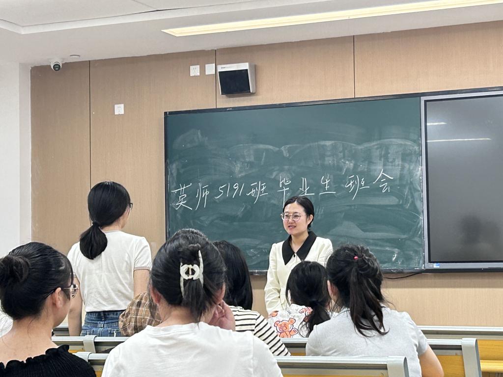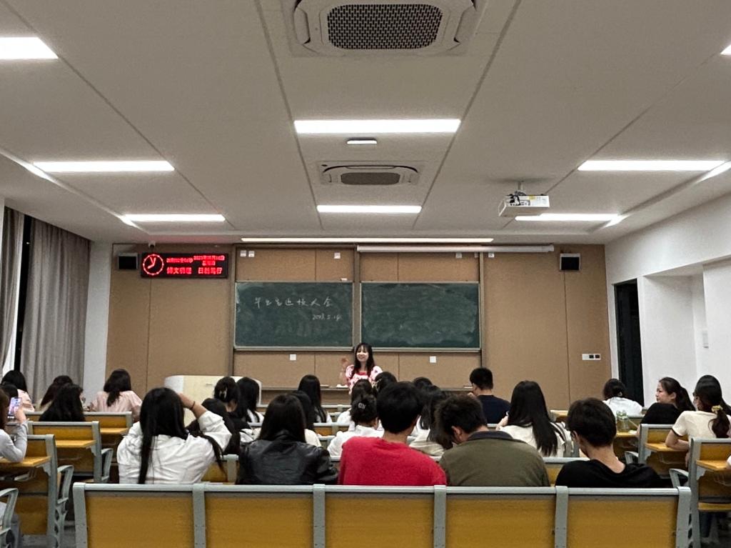 (通讯员 许静婷)5月13日晚,外国语学院毕业生班级在教学楼召开毕业生主题班会。会议由毕业生辅导员主持。