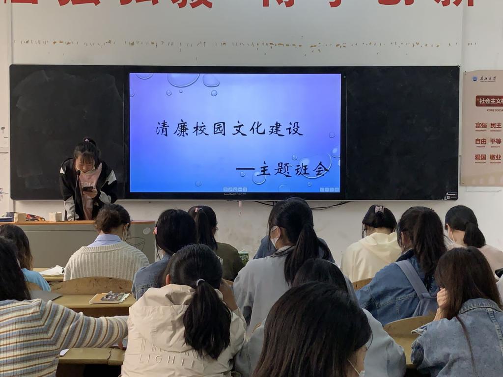 (通讯员 高业萌)为提高学生法律意识,弘扬法治精神,5月27至29日,外国语学院组织开展“清廉校园文化建设”主题班会,本次班会由各班班委主持。