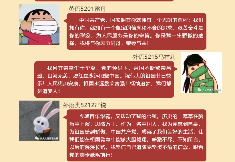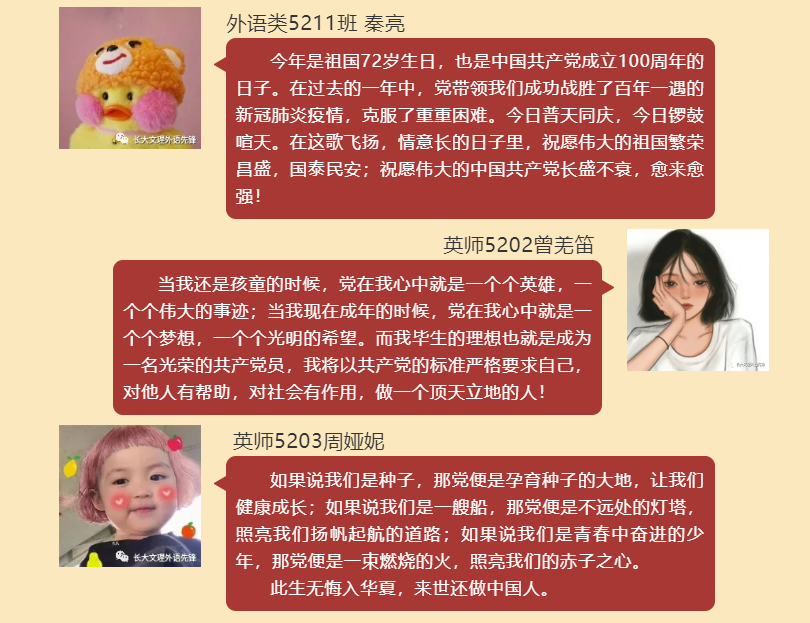 (通讯员 朱君瑶)正值建党百年之际,williamhill官网外国语学院学生党支部开展的“对党说句心里话”活动已经正式落下帷幕。各位同学书写对党和国家的祝福,向党的百年华诞献礼,祝祖国母亲72岁生日快乐!