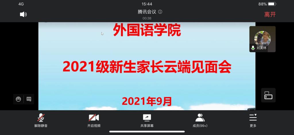 (通讯员 韩翠萍)9月6日下午三点,外国语学院通过腾讯会议召开了2021级新生家长线上交流会。会议由韩翠萍副院长主持。129名新生家长参加了此次交流会。