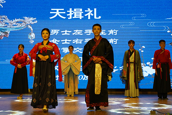比赛主题为“世界文化交融 魅力多彩神州”,包括古代汉服礼仪展示、礼仪操展示、个人才艺展示、国际礼仪服装展示4个部分,由杨星宇、余晶晶、赵紫曦、于普等4名同学担纲主持,李琴、王玲玲、梅曼曼、鲁婷等4名老师担任评委。