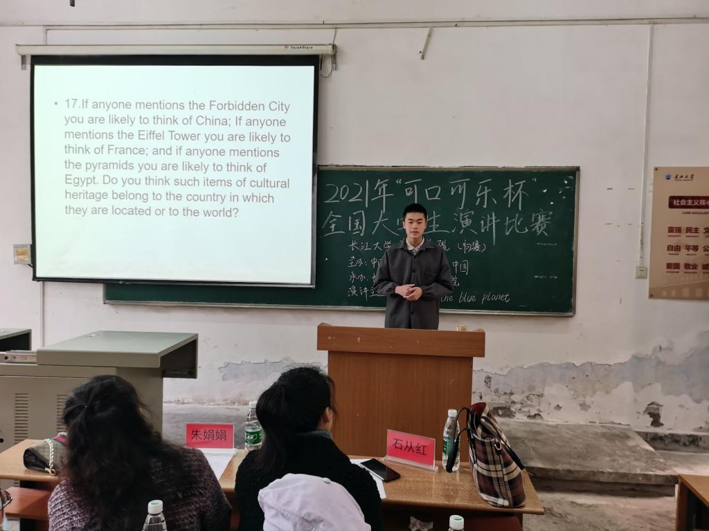 本次演讲主题是“Protecting the bule planet”,参赛选手需准备3分钟的已备演讲、2分钟即席演讲及3分钟的英语才艺表演。比赛过程中,所有选手从容演讲,展现出当代大学生扎实的英语基础,良好的心理素质。每位选手演讲结束后,评委根据选手所讲内容对选手进行提问,进一步了解选手们对话题的看法,同时也考验选手们临场反应能力。