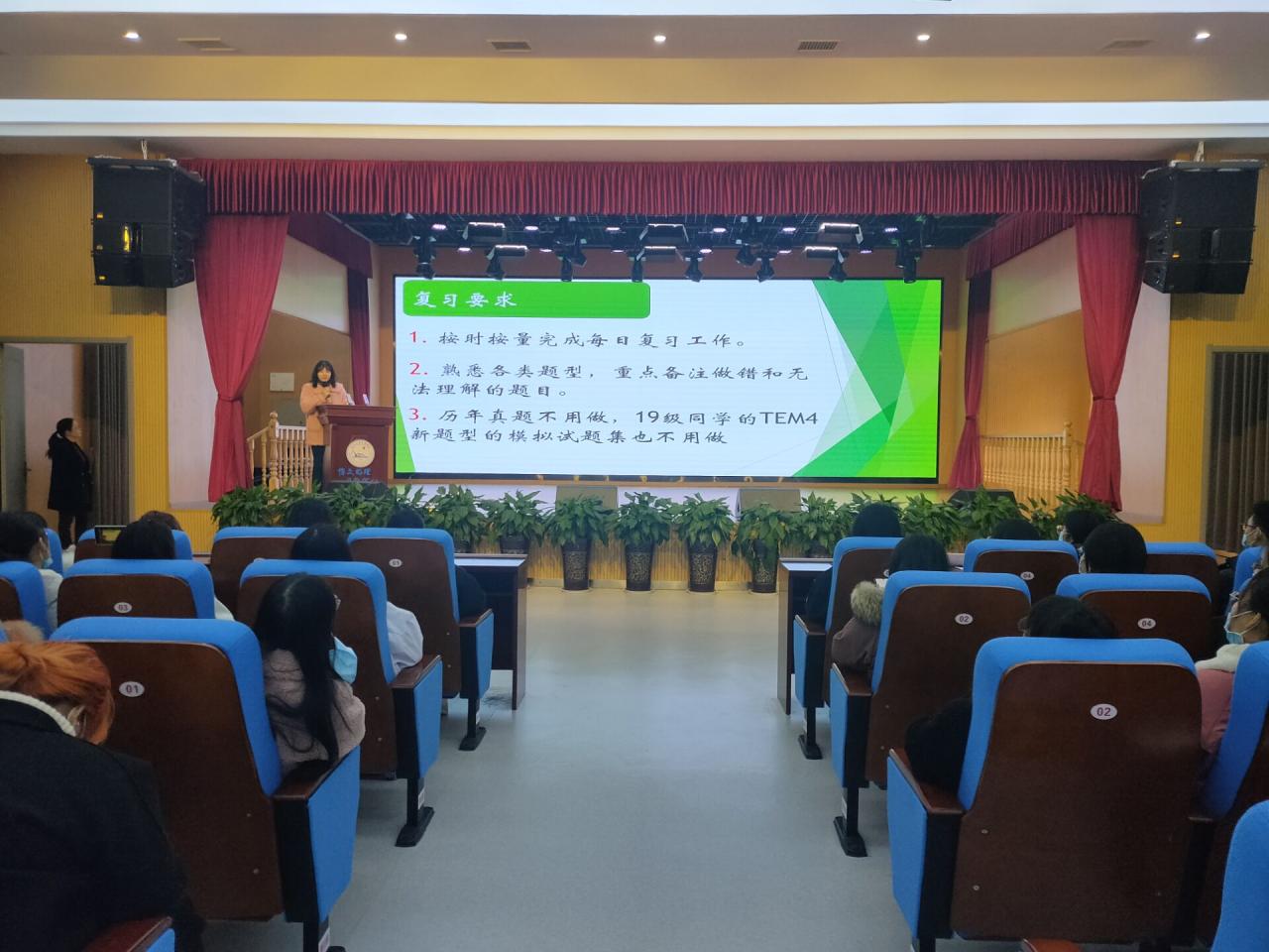 副院长罗丹老师总结,寒假的学习是为即将到来的专四考试做铺垫,希望每位学生都能自律,明确目标,充实自己。