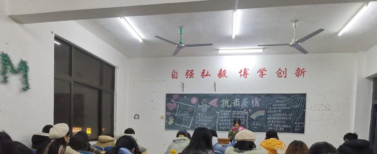 班会伊始,班委讲解疫情现状和防疫知识,呼吁同学应该以身作则,做好防护措施。随后,班委强调学校防疫相关要求,提醒学生注册荆智通出行码,进出校园扫码通行;乘坐交通工具期间的防疫注意事项;校内相关防疫要求,如不点外卖、佩戴口罩、保持间距、室内勤换气通风等。