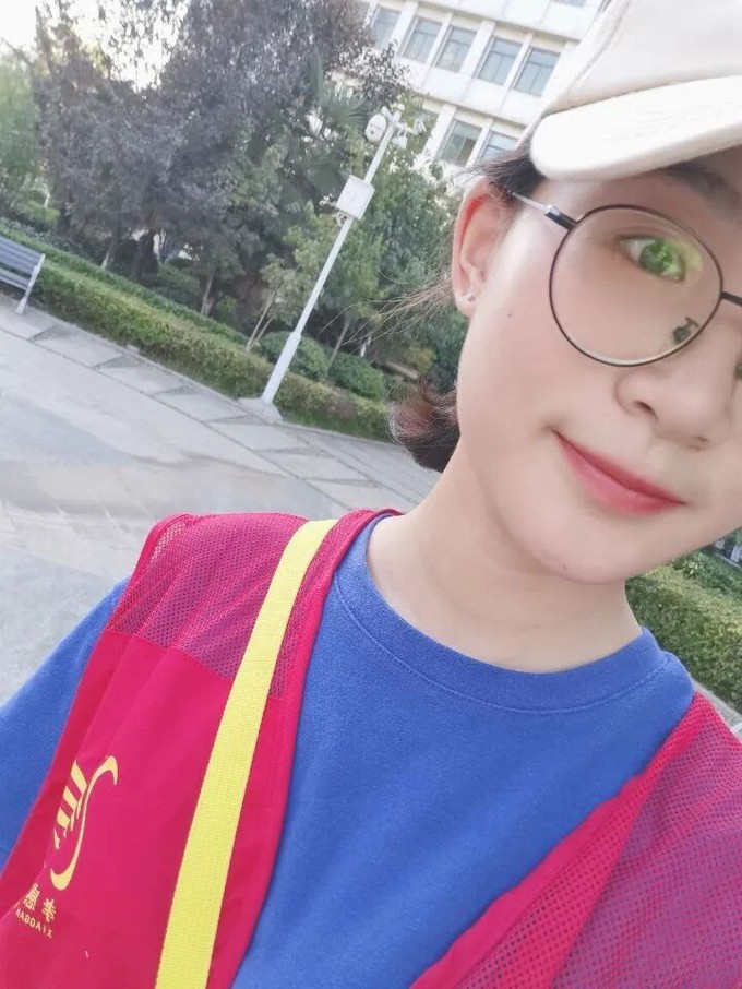 于老河口市仙人渡镇龙王冲村参加志愿者服务工作,主要负责给村民测量体温,调节心情等工作。被问及为什么参加的时候,她说:"作为一名大学生,就应该展现新时代大学生的精神风貌,在最美的年华中做自己想做的事,在社会有难时行己所行,无问西东。"