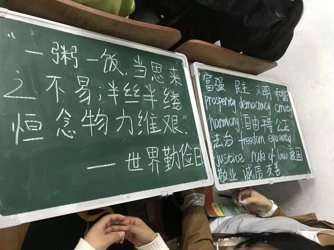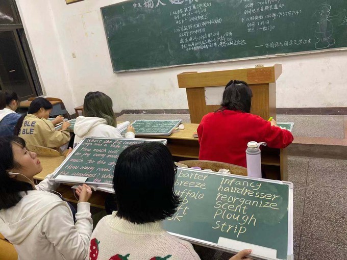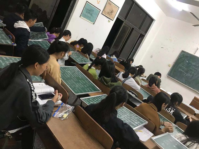 (通讯员拓颖)为促进英语师范生教学技能培养,进一步适应全国基础教育改革发展对师资培养的需求,加强师范生实践应用能力,外国语系开展英语师范生技能一体化专项训练活动,此次期中检查项目为英语师范生每天晚自习练习十五分钟黑板字。