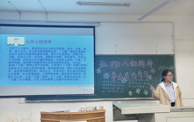 (通讯员王希千)为缅怀英雄、弘扬“10.24”英雄舍己救人的精神,2019 年10月24日晚七点,外国语系各班组织开展“弘扬人链精神、争当新时代有为青年”的主题团课活动。团课由各班团支书主持,全体团员参加。