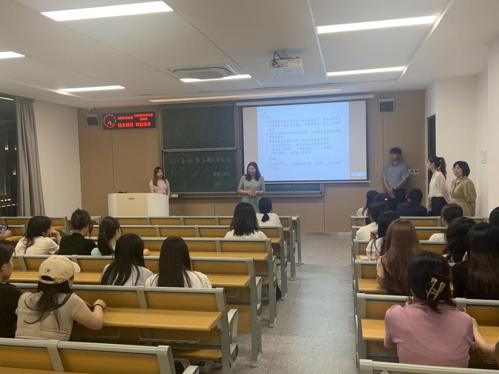 9月3日晚上,5个新生班级在教室召开2023级新生班主任见面会,外国语学院院长许晓艳、常务副院长韩翠萍、党总支书记王玲玲、副书记刘鋆锋到场参加,会议由各班班主任主持。见面会上,许晓艳院长不仅对同学们的生活方面给予了全面的关怀,还特别强调了同学们要在大学期间积累丰富的知识,培养自己的能力和技能,为未来的职业生涯做好充分的准备。希望学生们能够把握好大学期间的每一个机会,积极参与各种实践活动和学术科研,不断提升自己的综合素质,为自己的未来打造出一片光明的天地。