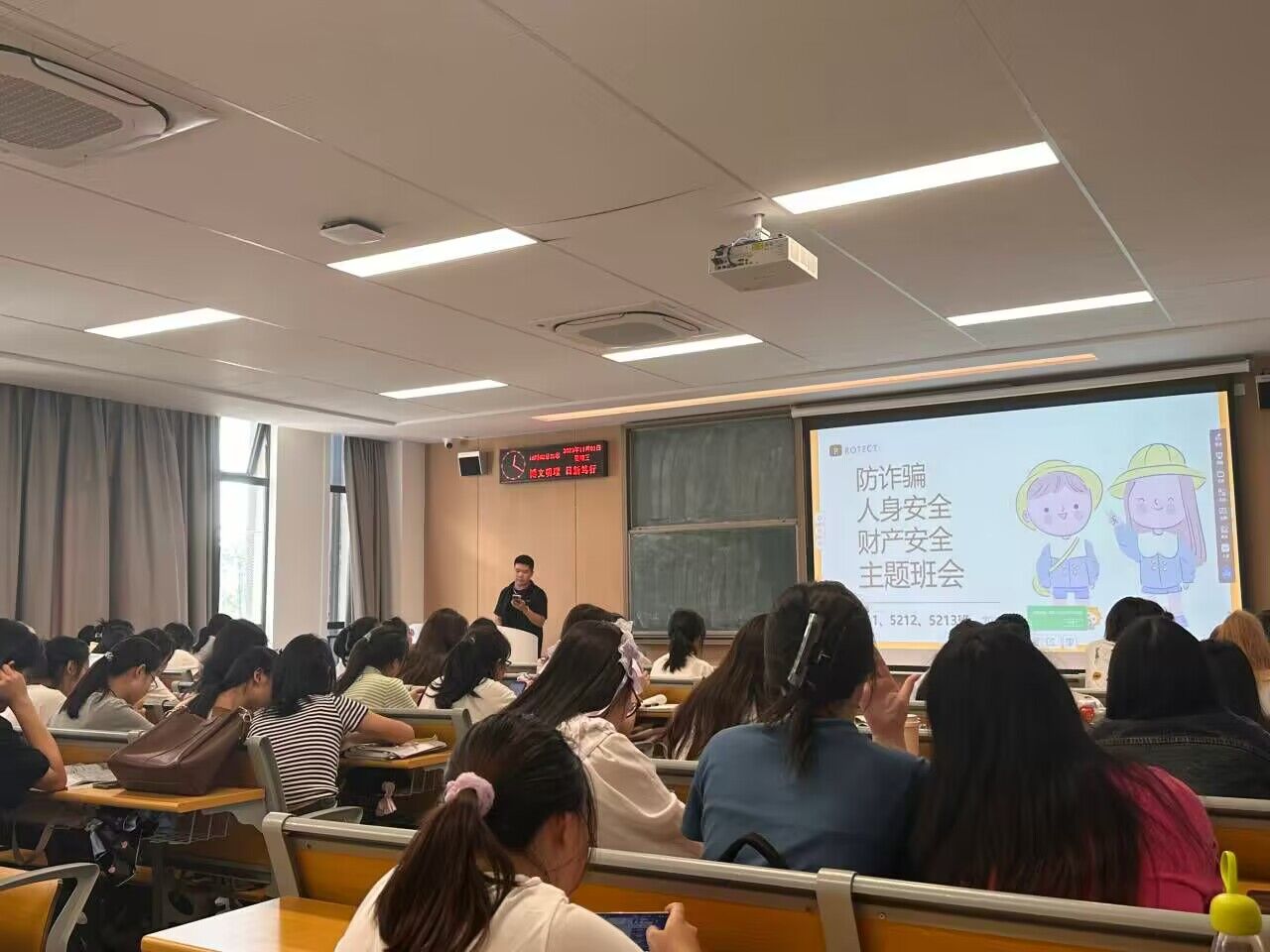 班会中,辅导员通过讲解真实案件引起大家对防诈骗的重视。向同学们讲述了电信诈骗的常用犯罪伎俩,重点介绍网络购物、兼职刷单、游戏交易等高发类诈骗案例。同时提醒同学们莫存贪小利之心,注意保护个人隐私。