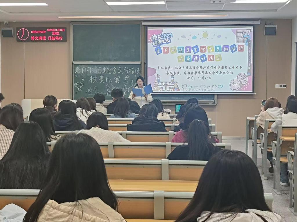 本网讯(通讯员 曹杰)11月26日,由外国语学院团总支学生会组织部举办的以“走下网络,走出宿舍,走向操场”为主题的特色活动在同学们的积极参与下顺利落下帷幕。此次活动包括棋类,毽球类比赛和趣味运动会三个部分。