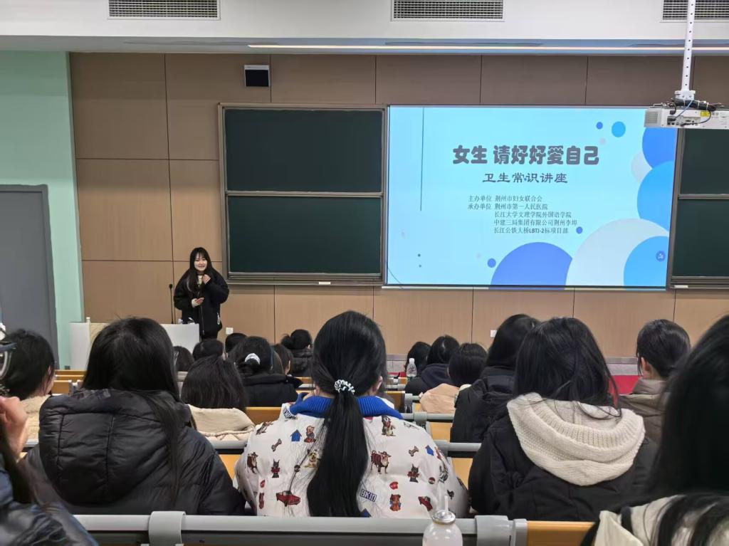 本网讯(通讯员 汪雨馨)为深化“两康一训”育人理念,3月6日下午,外国语学院在B-213教室举办了“女生,请好好爱自己”卫生常识讲座。本次讲座邀请到荆州市第一人民医院杨静医生担任主讲。