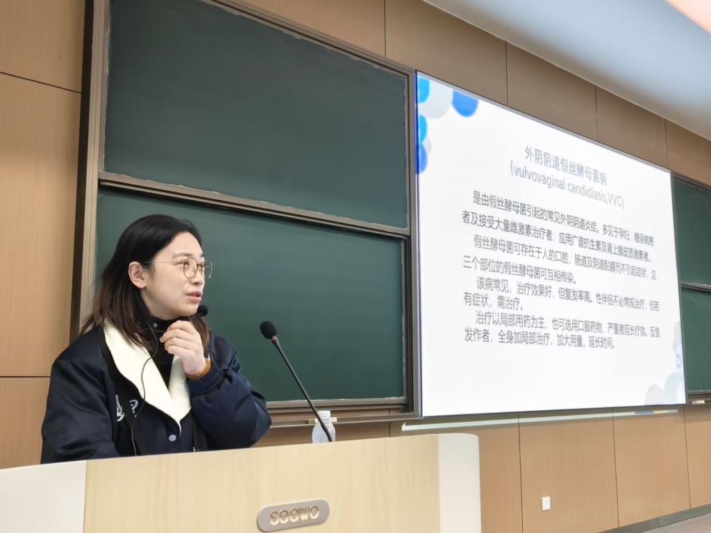 活动伊始,杨静医生凭借专业知识与丰富经验,向同学们详细讲解女性生殖系统结构、常见妇科炎症的预防和治疗、科学避孕方法等知识。同时强调,女性健康关乎个人幸福和生活质量,建议同学们树立正确的健康观念,养成良好的生活习惯。