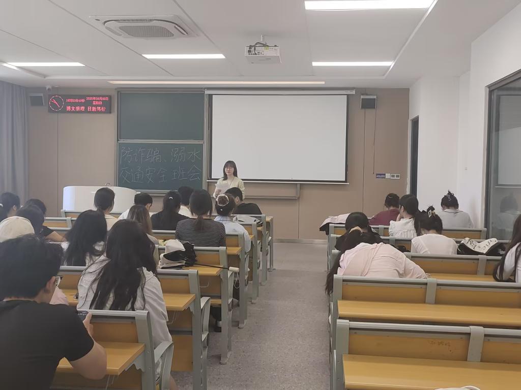本网讯(通讯员 杨芷萱)6月5日 ,外国语学院各班召开“防诈骗、防溺水、交通安全”主题班会,本次班会由各班班主任主持召开,全体学生参与。 班会上,班主任结合近期真实案例,深入讲解安全知识。针对层出不穷的诈骗手段,通过分析刷单返利等典型案例,提醒学生时刻保持警惕,保护好个人信息,避免落入诈骗陷阱;随着气温升高,溺水事故进入高发期,班主任强调远离陌生水域,普及溺水危害、预防措施及自救互救知识;在交通安全方面,要求学生严格遵守交通规则,杜绝闯红灯、横穿马路等危险行为,做到安全文明出行。