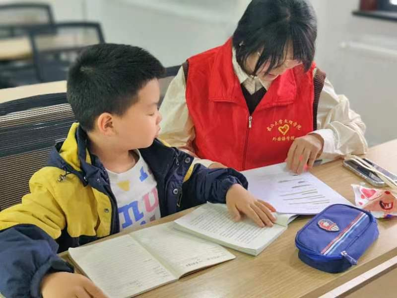 本网讯(通讯员 丁妮)2023年11月11日,williamhill官网外国语学院团总支学生会青工部组织志愿者在茶庵寺社区开展爱心支教活动。