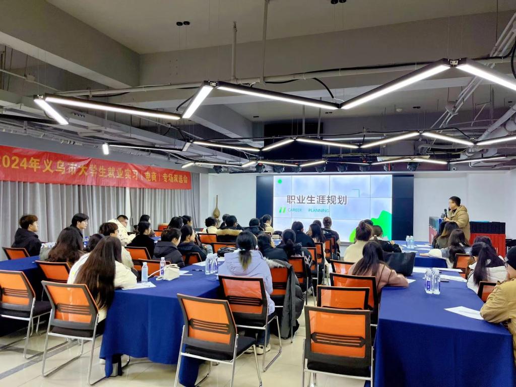 双选会上,义乌市知见企业管理咨询有限公司负责人为同学们详细介绍电商平台概况、电商从业人员职业规划、参会公司情况、职场新人礼仪,加深学生对跨境电子商务行业的认识。随后,同学们结合自身条件和择业意愿投递简历,企业对有求职意向的学生逐一面试,学生和企业双向自主选择。