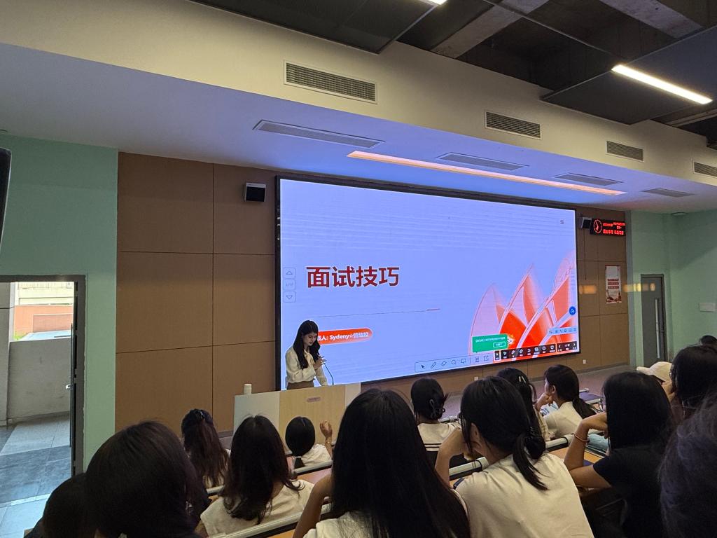 随后,英师5213班李晓红学姐分享了当英语教师的实习经验。同时详细介绍了招聘会、秋招/春招以及学校公众号等获取招聘信息的重要性。英日5211班何珮榕学姐分享在外贸行业的实习经历。商务S5232班谭诗琴学姐聚焦面试技巧展开分享。此外,还分享了自己的创业经历,她的勇气与智慧赢得同学们阵阵掌声。英师5213班齐慕子学姐带来国考经验分享,推荐了不同模块的备考名师资源,帮助同学们高效学习。分享环节结束后,李琳老师进行总结发言,对各位分享者的精彩发言表示衷心感谢,高度肯定了此次分享会的意义和价值。