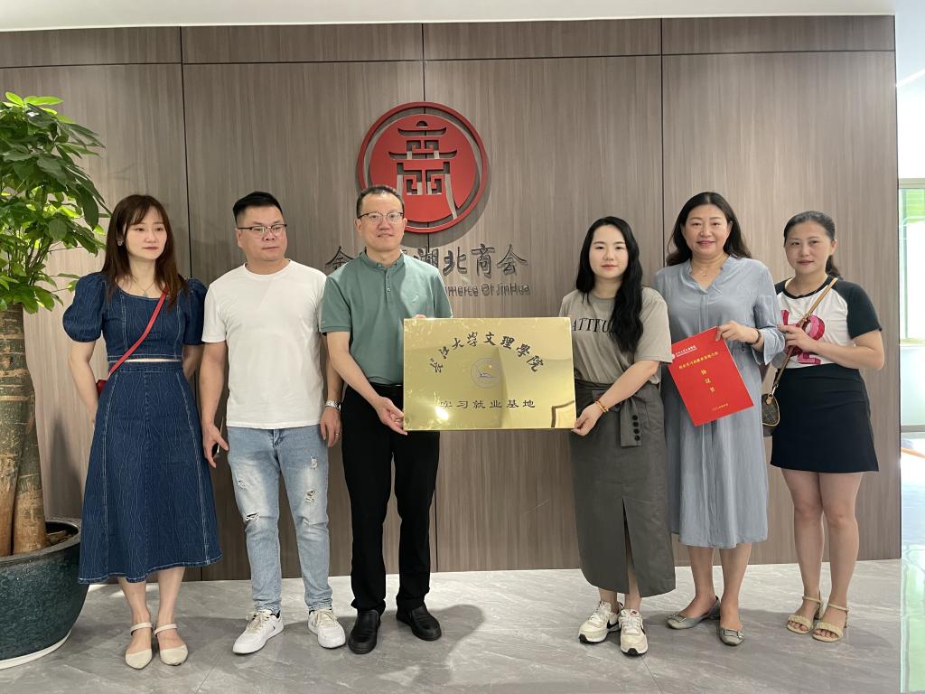 王文凯代表学院与金华市湖北商会等合作单位举行了实习就业授牌仪式,许晓艳分别与以上企业签订就业合作框架协议。