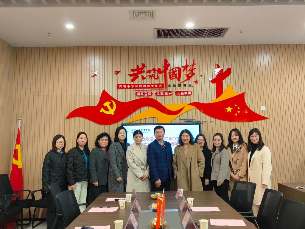 本网讯(通讯员 许静婷)11月20日,湖北第二师范学院外国语学院院长刘晖、党委书记胡崇芝、副院长冯婷等一行六人来我院开展调研交流活动。外国语学院院长许晓艳、常务副院长韩翠萍、副院长罗丹、党总支副书记刘鋆锋、办公室主任李培培、辅导员许静婷参加活动。外国语学院党总支书记王玲玲主持调研交流会。