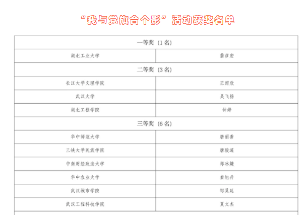 据悉,本次“我与党旗合个影”活动由由团省委学校部、省学联秘书处联合主办,外国语学院学生党支部摄影作品获二等奖。
