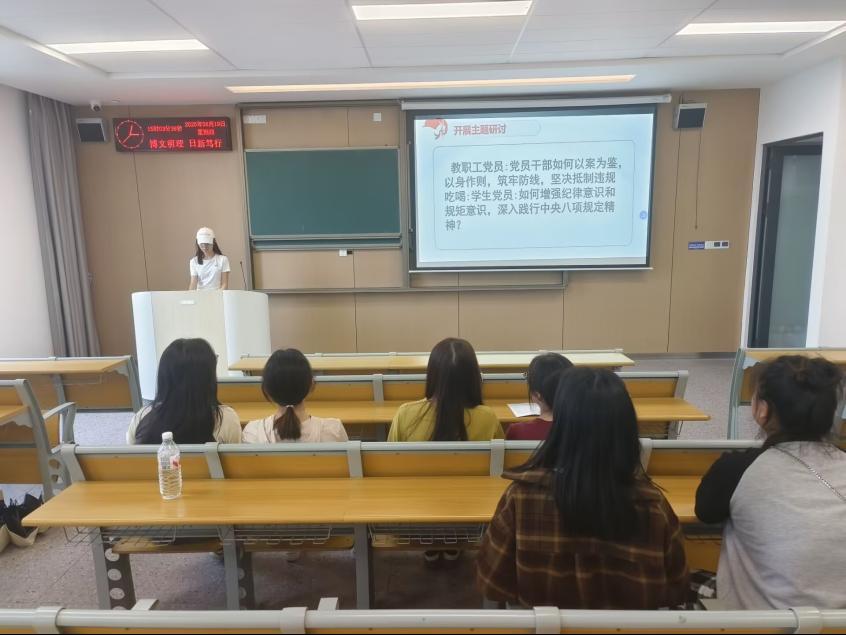 随后,全体党员结合学习工作实际,交流研讨深入贯彻中央八项规定精神学习教育心得体会,谈谈作为青年学生如何在中国式现代化建设中挺膺担当。大家结合自身实际,从学习、工作、生活等方面畅所欲言。在交流研讨会上,党员同志们表示,作为学生党员,我们应将精神融入校园生活与学习实践中,从思想上筑牢防线,摒弃“躺平”“摆烂”等消极心态,在学业上坚守诚信底线,抵制学术不端与敷衍应付;在生活中厉行勤俭节约,反对铺张浪费与盲目攀比。同时,积极发挥先锋模范作用,在学生组织工作中避免形式主义,提升活动实效,主动倾听同学诉求,切实为同学办实事。通过不断强化自我革命意识,将精神转化为日常行为准则,以实际行动践行党员的责任与担当。
