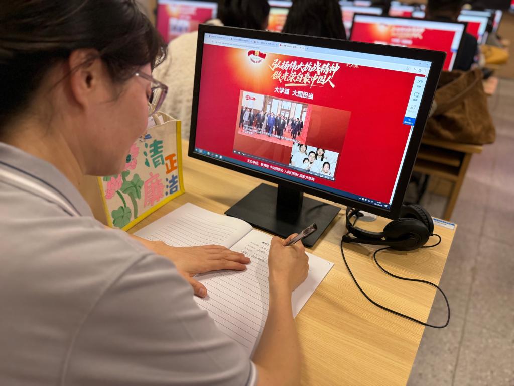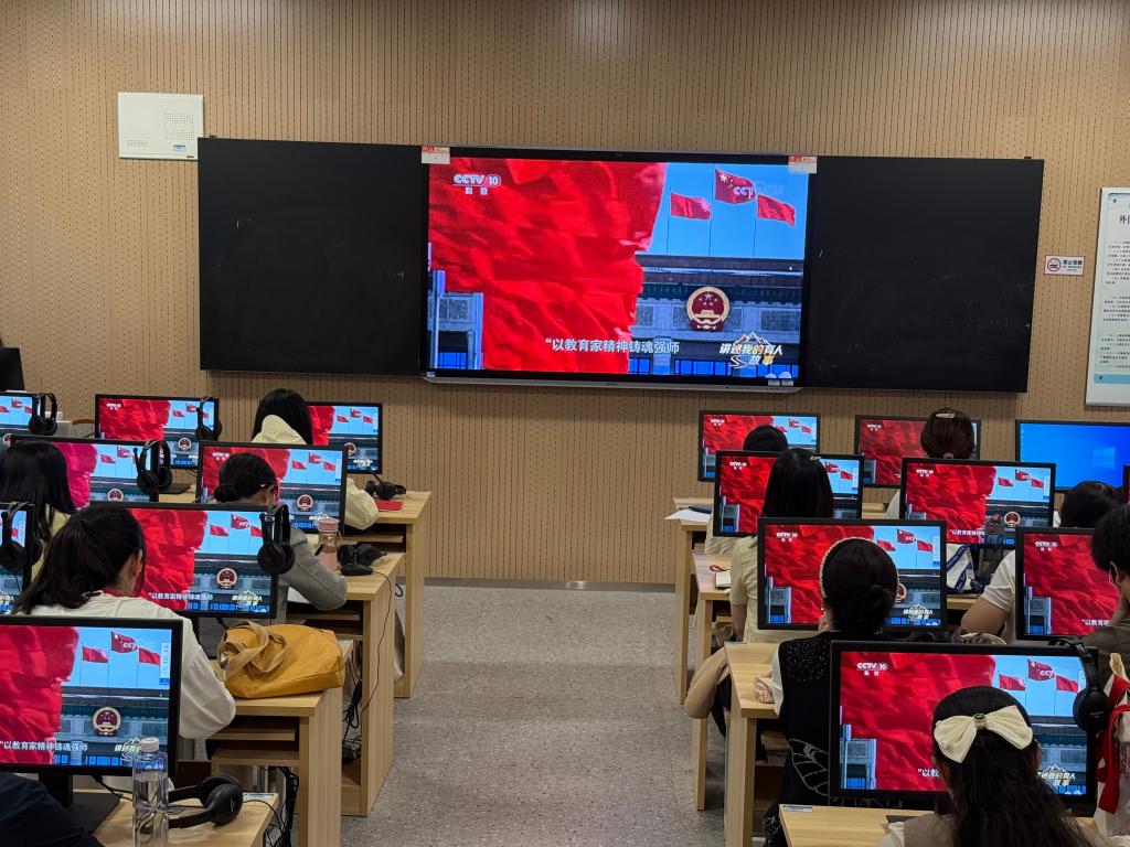 接着,全体教师收看“弘扬伟大抗战精神做光荣自豪中国人——纪念中国人民抗日战争暨世界反法西斯战争胜利80周年”思政大课。作为教育工作者,将以思政大课为契机,进一步将伟大抗战精神融入课堂教学和实践育人全过程,自觉担当起传承红色基因的使命。