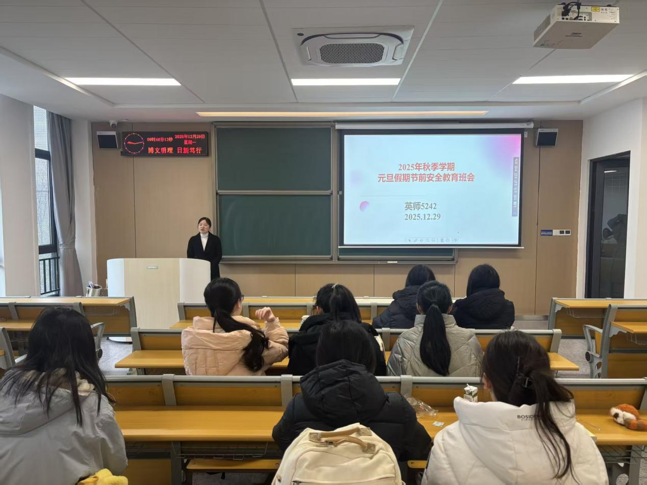 本网讯(通讯员 刘美慧)为增强学生安全意识,筑牢假期安全防线,确保元旦期间校园稳定与学生平安,12月29日,外国语学院组织各班级统一召开元旦假期节前安全教育主题班会。