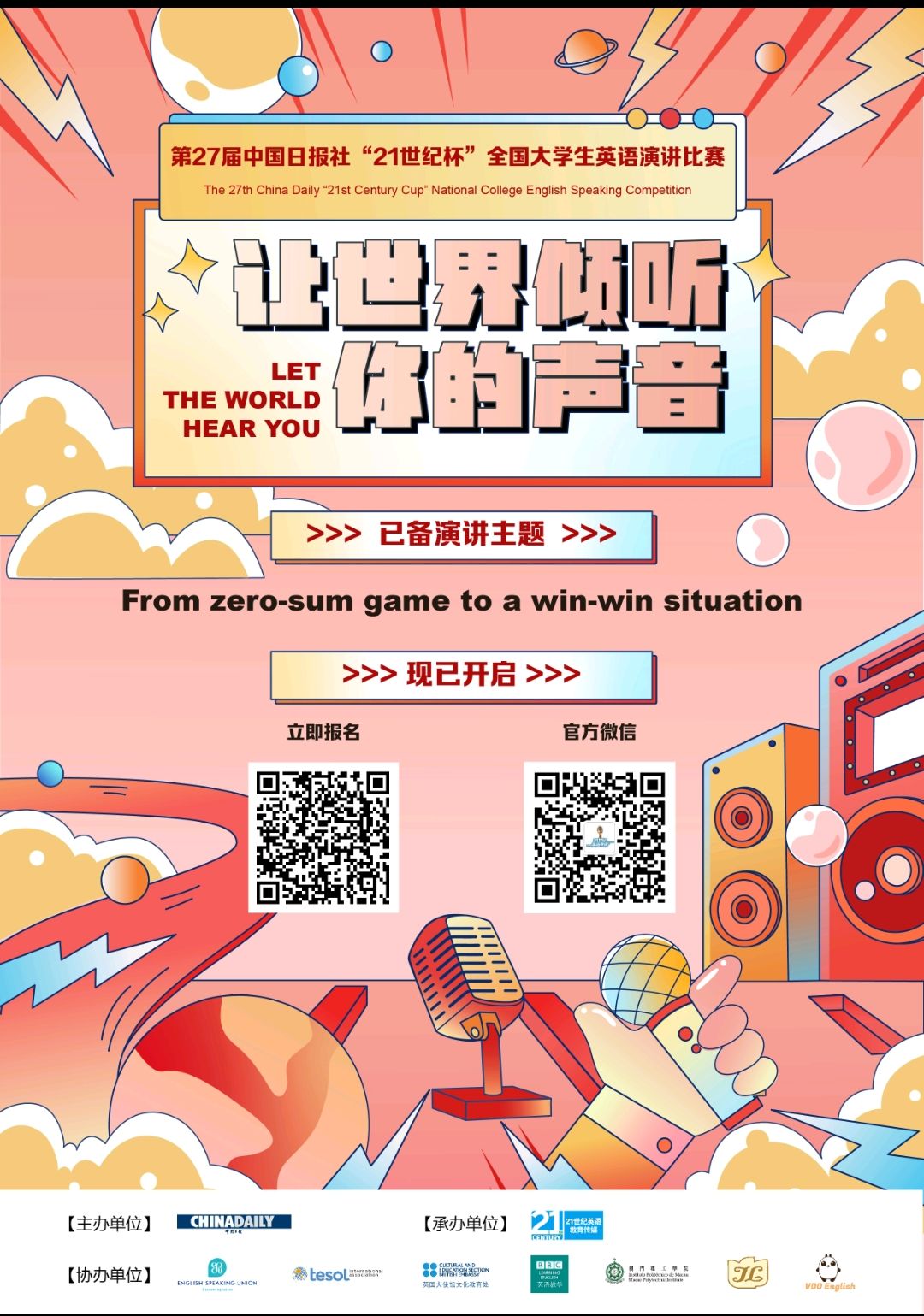 williamhill官网外国语系将于三月中旬通过线上视频的方式举行第27届中国日报社“21世杯”全国大学生英语演讲比赛校园赛区的选拔。