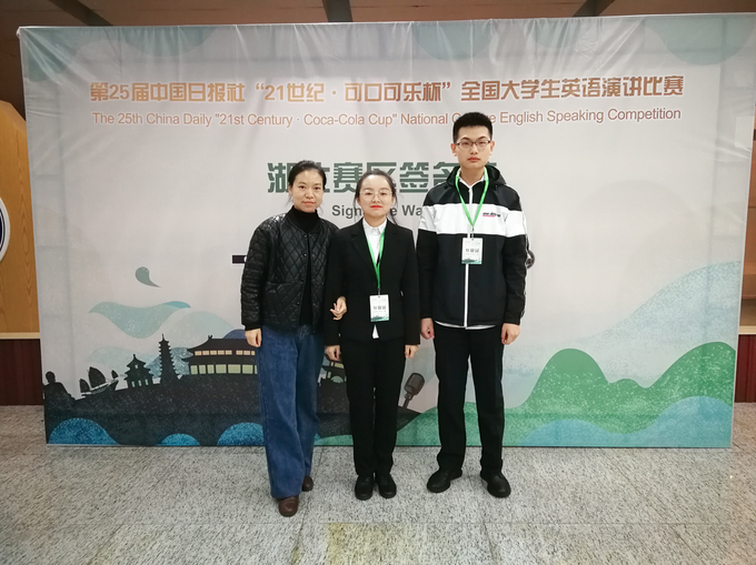 2019年11月17日,第二十五届中国日报社“21世纪•可口可乐杯”全国大学生英语演讲比赛在武汉大学举办。我院外语系商务英语5171班王晶同学、英语5182班向立海同学分别荣获三等奖。
